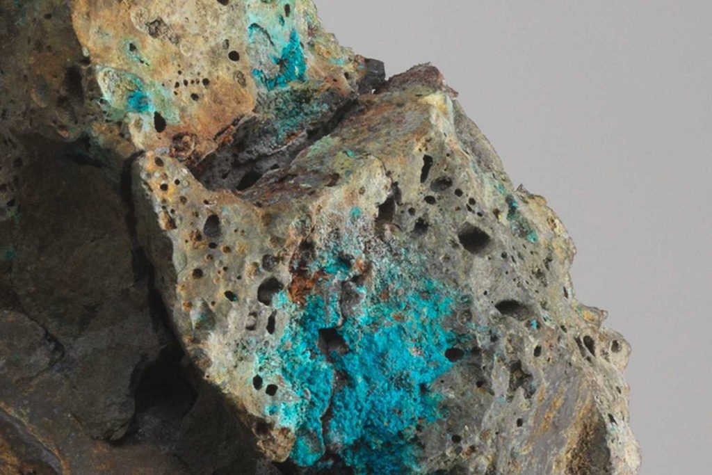 Close-up of a sample of “Metamorphism LI”, Julian Charrière’s sculptures present all throughout the first section of the exhibition